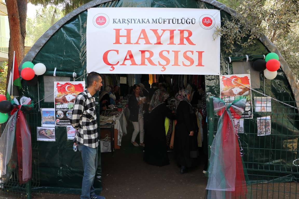 İzmir’de, Karşıyaka İlçe Müftülüğü ve TDV Şubesi iş birliğinde Gazze’ye yardım amacıyla “hayır çarşısı” açıldı.