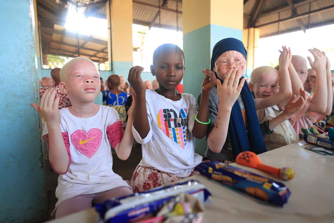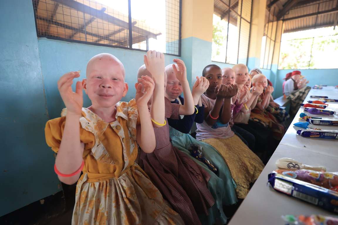 Türkiye Diyanet Vakfı (TDV), Tanzanya’da vücutlarındaki bir pigmentin eksikliği nedeniyle “beyaz” olarak dünyaya gelen albino yetimleri hediyeleriyle sevindirdi.
