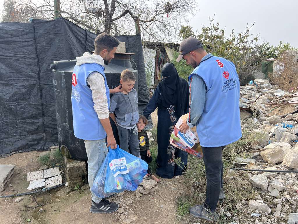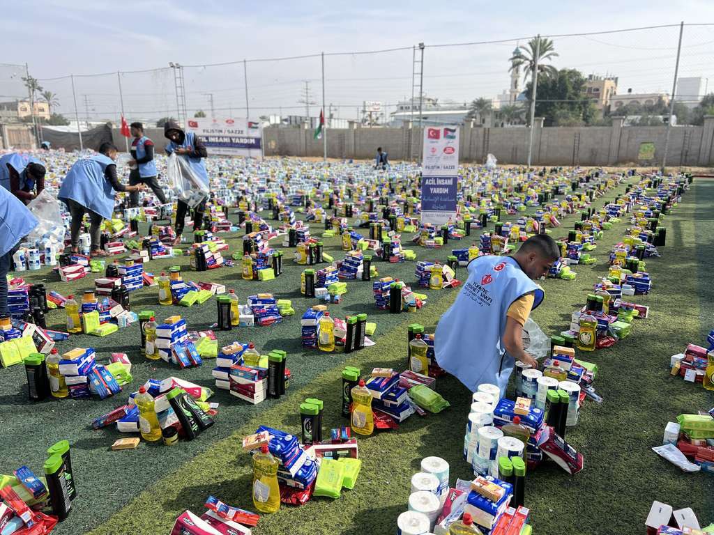 Hazırlanan yüzlerce gıda kolisi, temel ihtiyaçlara ulaşmakta zorlanan sivillere ulaştırılmak üzere Deyr Belah’taki yerinden edilmiş Filistinlilere dağıtıldı. Yardımların, bölgedeki yoğun ihtiyaç nedeniyle önümüzdeki günlerde de devam edeceği belirtiliyor.