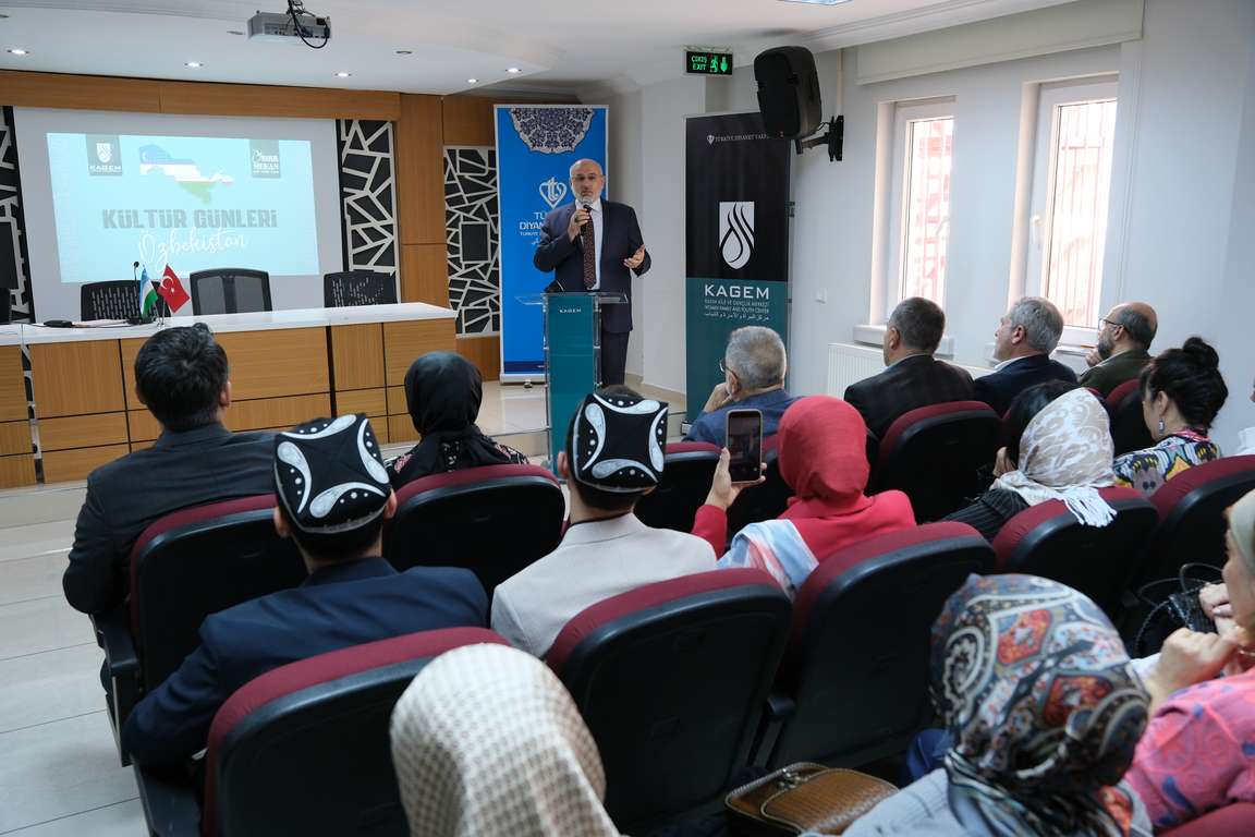 Diyanet İşleri Başkan Yardımcısı ve TDV Mütevelli Heyeti Üyesi Osman Hafiz Şahin, açılışta yaptığı konuşmada ilki Özbekistan ile başlayan “Kültür Günleri”nin hayırlara vesile olmasını temenni etti. Özbekistan’ı iki kez ziyaret ettiğini belirten Şahin, ülkenin kendi gönül dünyasında özel bir yere sahip olduğunu ifade ederek, “Mekke, Medine ve Kudüs bir yerde durur; bunlar mukayese edilmez. Ancak bu üç mübarek beldeyi hariç tuttuğumuzda, ruhumda en büyük iz bırakan yer Özbekistan’dır. Çünkü orada kendi ruhumu buldum.” dedi.