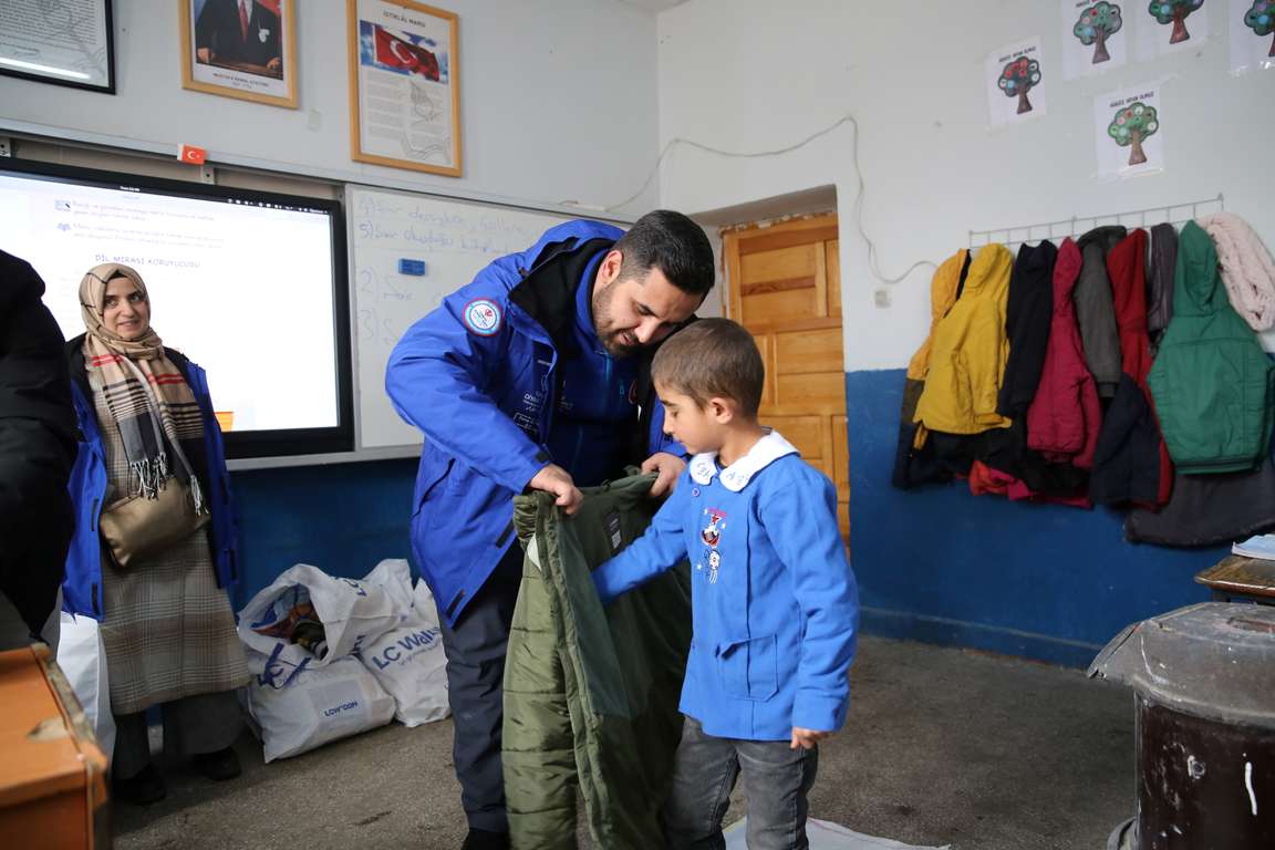 Köy okullarında kışlık kıyafet dağıtımı yapıldı