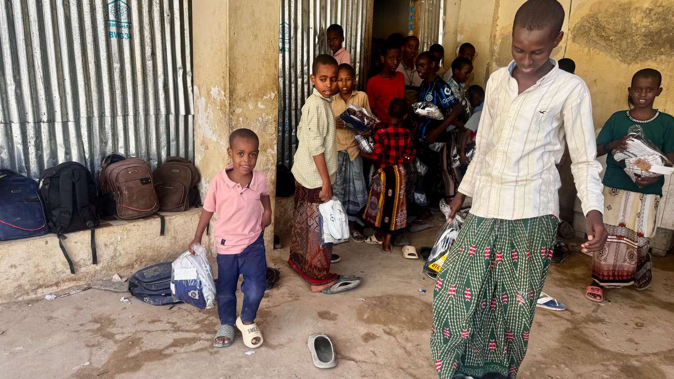 Erkek ve kız çocukları için ayrı ayrı hazırlanan kıyafetler, Türkiye’nin Mogadişu Büyükelçiliği Din Hizmetleri Müşaviri Ömer Faruk Arslan, TDV Somali Temsilcisi Osman Türk ve gönüllüler tarafından, 9 farklı bölgedeki yetimhanelerde kalan çocuklara dağıtıldı.