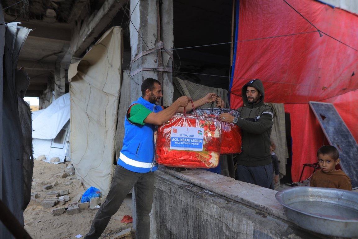 Türkiye Diyanet Vakfı (TDV), Gazze'de 5 bin ihtiyaç sahibine çift kişilik battaniye dağıttı.