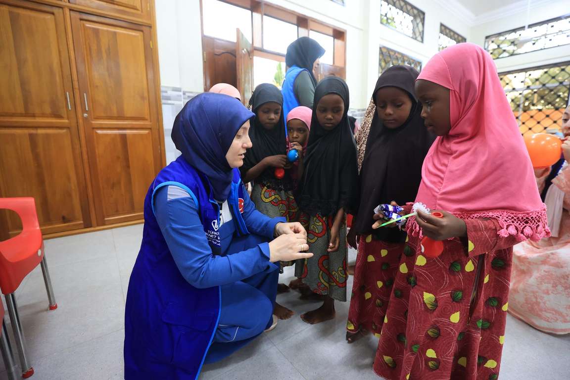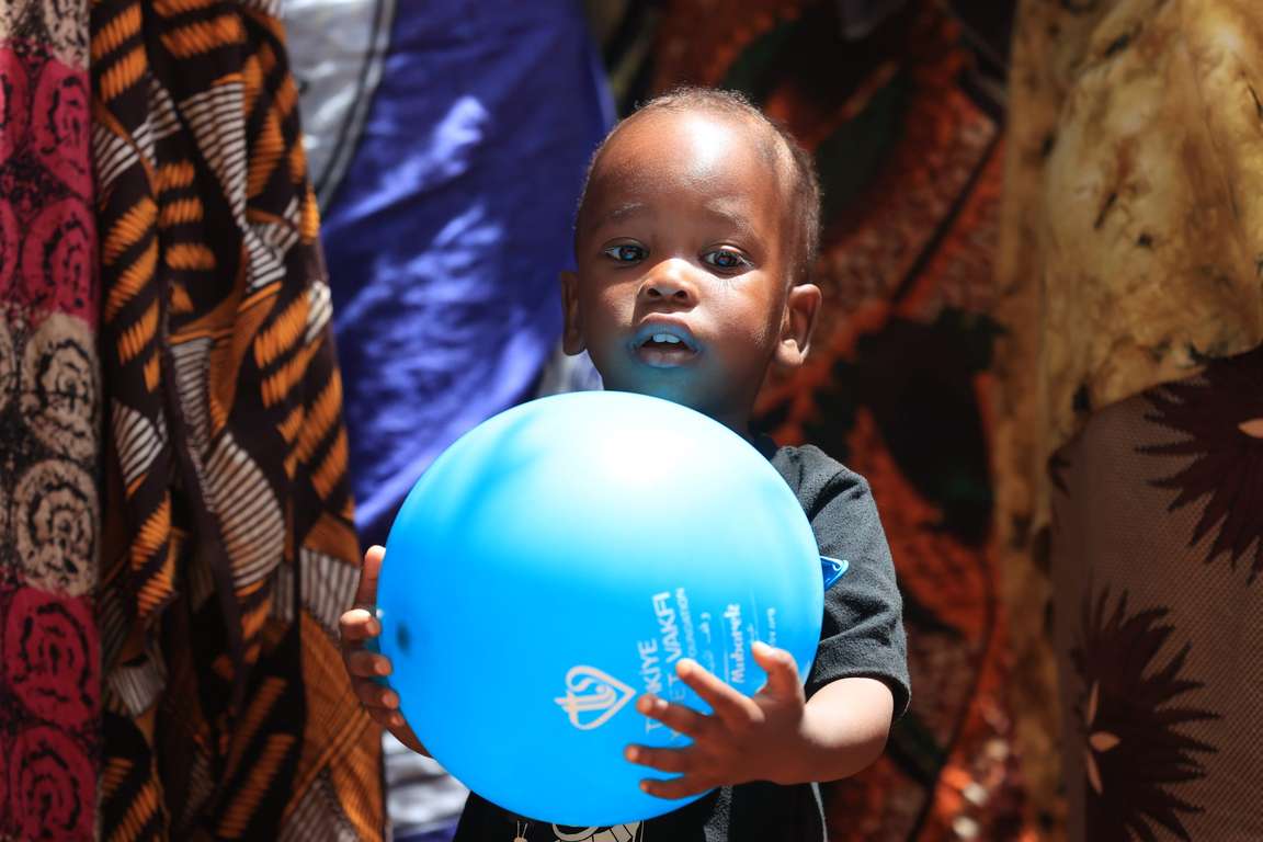 Türk yardım görevlileri, Tangalı çocuklara balon ve şeker dağıttı, hediyeler verdi.