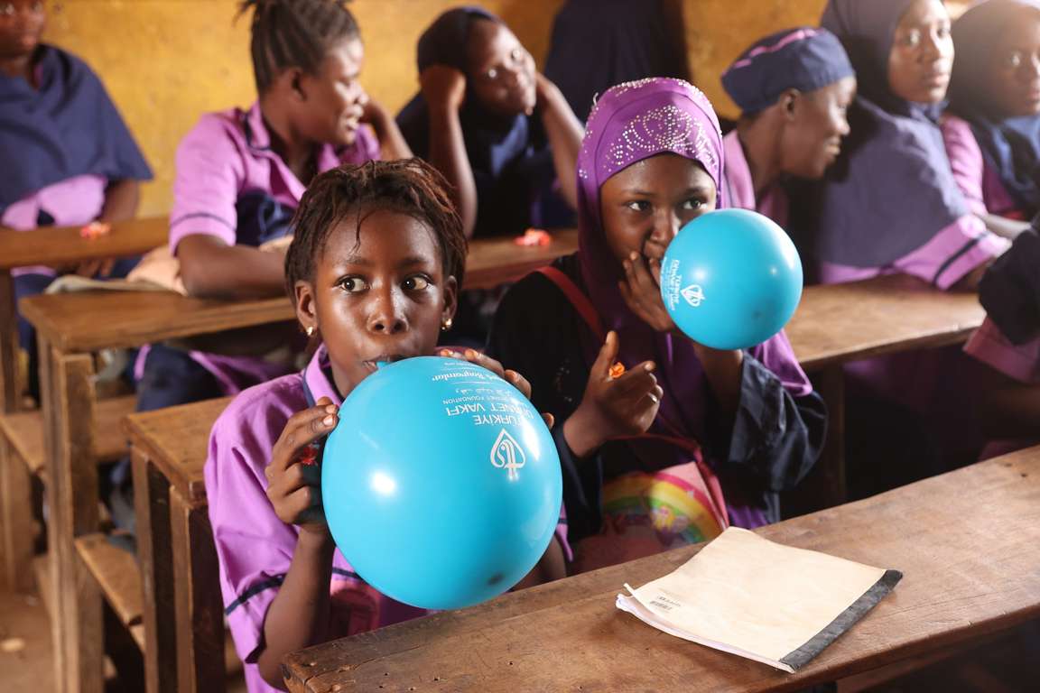 Dağıtımın yapıldığı okuldaki çocuklara ise kalem, balon ve şeker verildi.